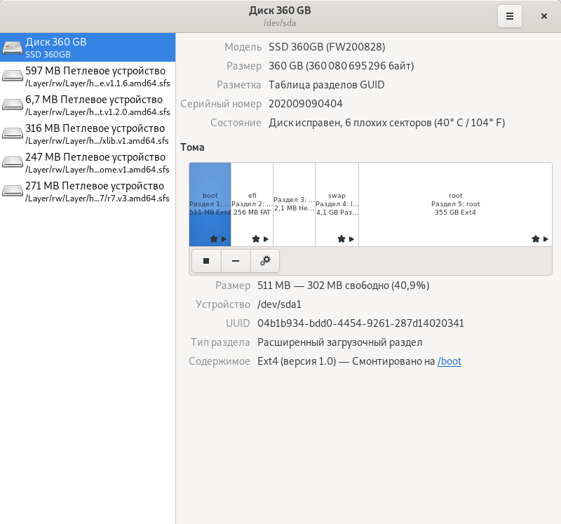 Gnome Disk Utility поддерживает форматирование дисков, управление разделами, создание образов и восстановление разделов из образа. Также есть инструмент для оценки производительности диска.