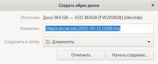 2. В открывшемся окне выберите параметры для Создания образа диска.