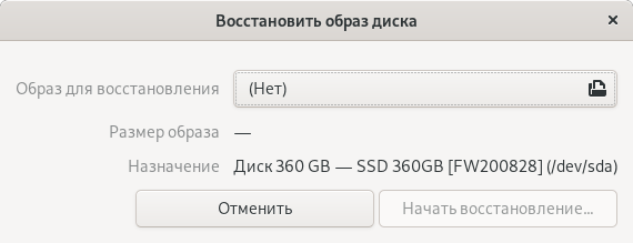 2. В открывшемся окне выберите параметры для восстановления образа диска.