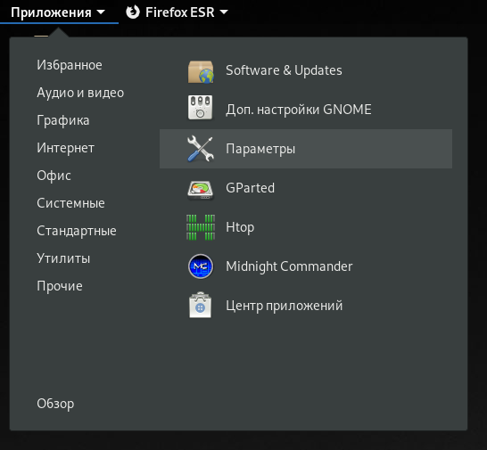 1. Открыть панель Приложения в левом верхнем углу;