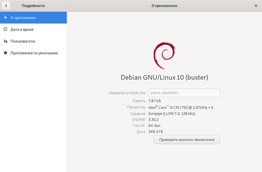 В открывшемся окне вы сможете просмотреть информацию о компьютере, а так же проверить наличие обновлений.