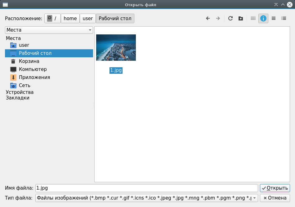 Чтобы открыть изображение, сделайте следующее: