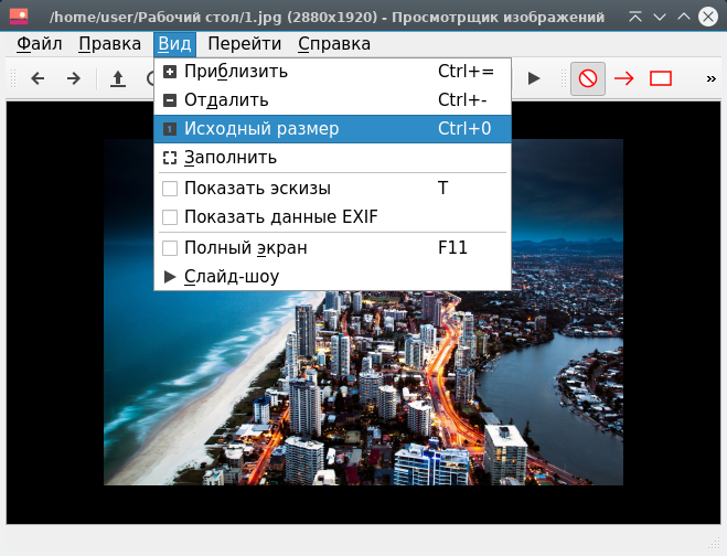 Выберите Вид ▸ Приблизить или Вид ▸ Отдалить. Чтобы восстановить исходный размер изображения, выберите Вид ▸ Обычный размер. Чтобы изображение поместилось в окне, выберите Вид ▸ заполнить.