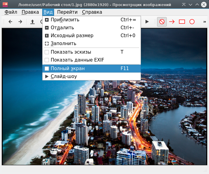 Чтобы отобразить изображение на весь экран, выберите Вид ▸ Полный экран .