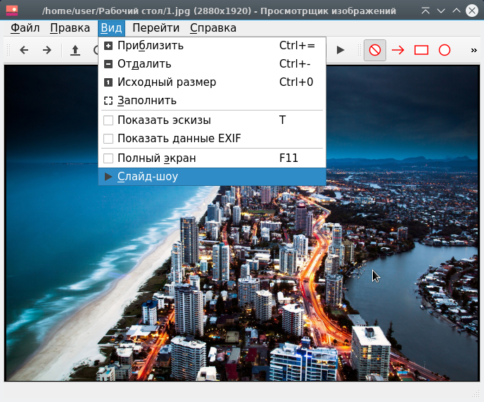 В этом случае вы также можете использовать режим слайд-шоу, в котором программа просмотра изображений автоматически переключается на следующее изображение в вашей коллекции. Вы можете запустить слайд-шоу, выбрав Вид ▸ Слайд-шоу.
