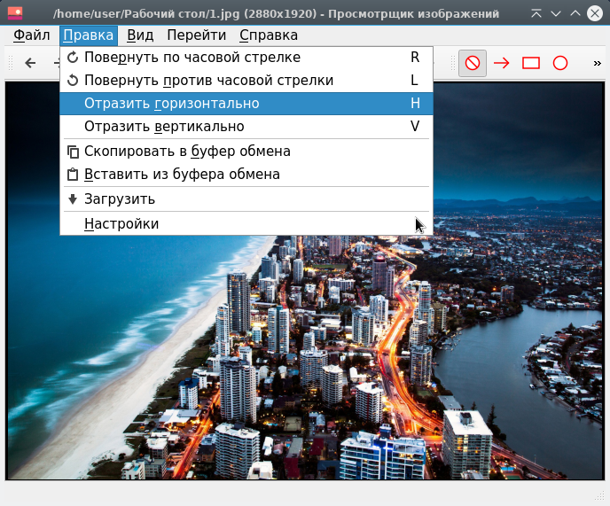 Чтобы перевернуть изображение , выберите Правка ▸ Отразить горизонтально или Правка ▸ Отразить вертикально.