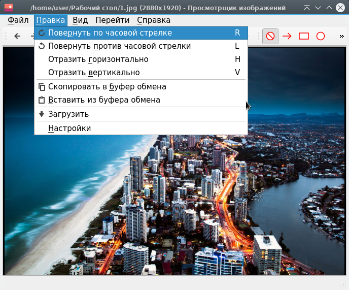 Чтобы повернуть изображение на 90 градусов , выберите Правка ▸ Повернуть по часовой стрелке или Правка ▸ Повернуть против часовой стрелки.