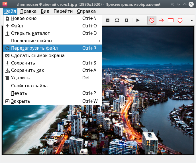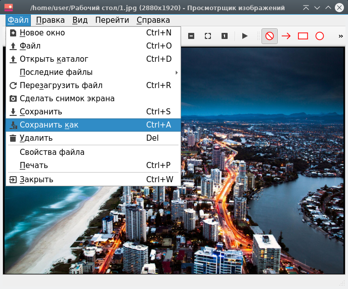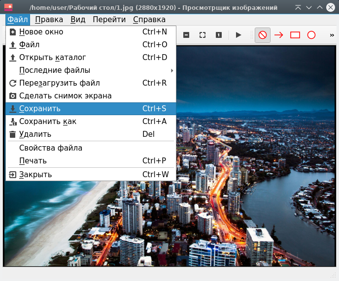 Чтобы сохранить изображение, выберите Фfqk ▸ Сохранить. Изображение будет сохранено под тем же именем и типом файла.