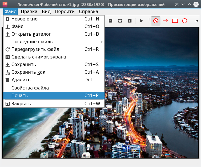 Чтобы распечатать изображение , выполните следующие действия: