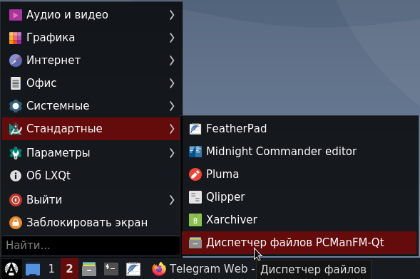 Чтобы открыть файловый менеджер PCManFM-Qt, нужно выполнить следующие действия: