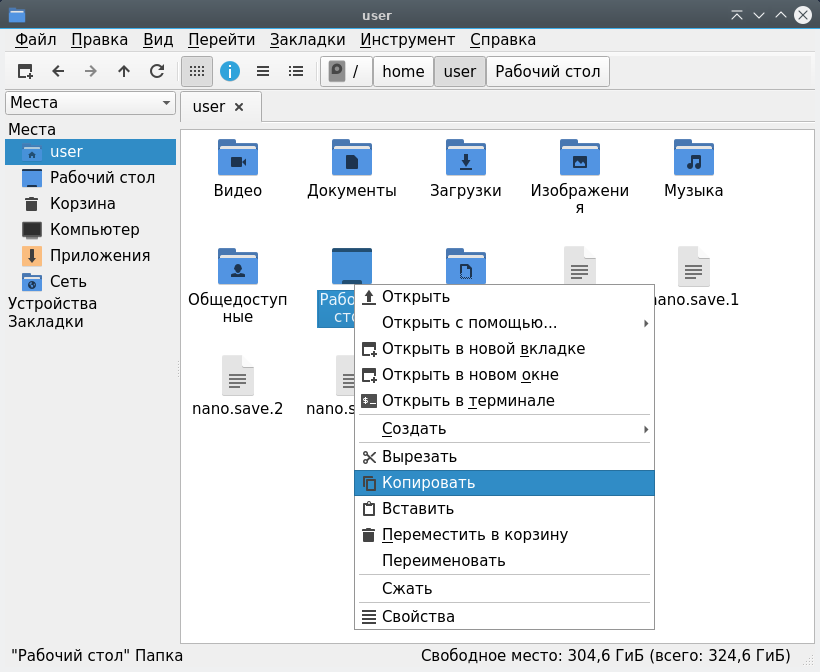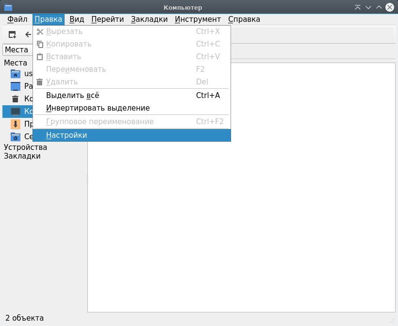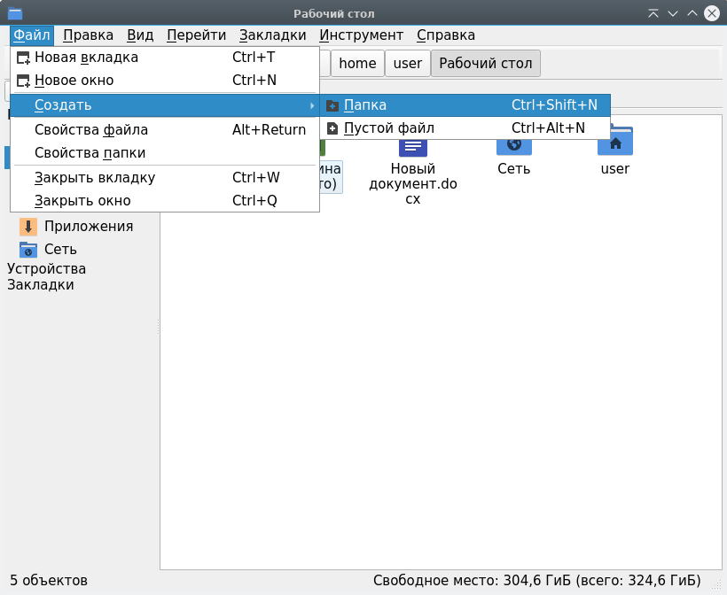 Файловый менеджер PCManFM-Qt, является точкой доступа, как к файлам, так и к приложениям. Используя файловый менеджер, можно: