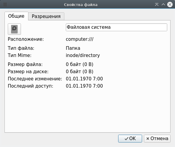 В нём вы сможете просмотреть свойство файла или папки, а так же поменять права для данного файла или папки.