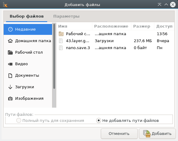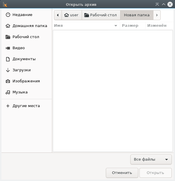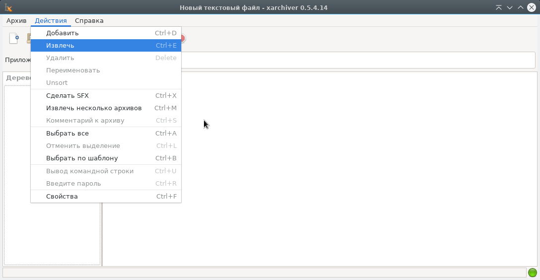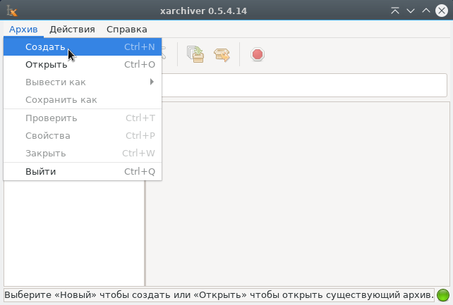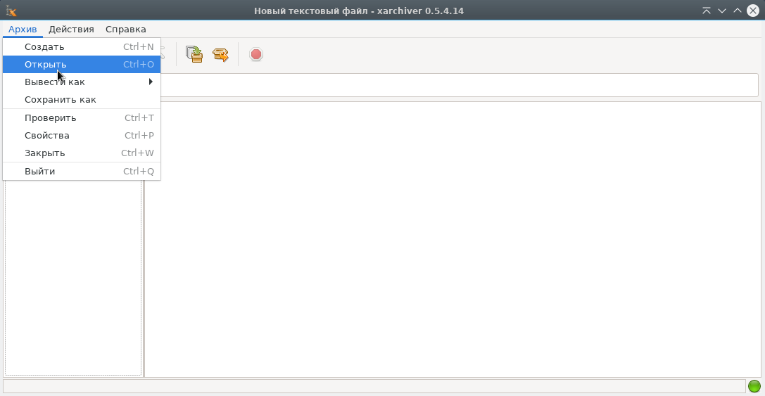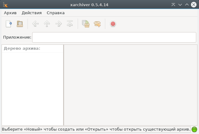 При запуске Xarchiver отображается следующее окно: