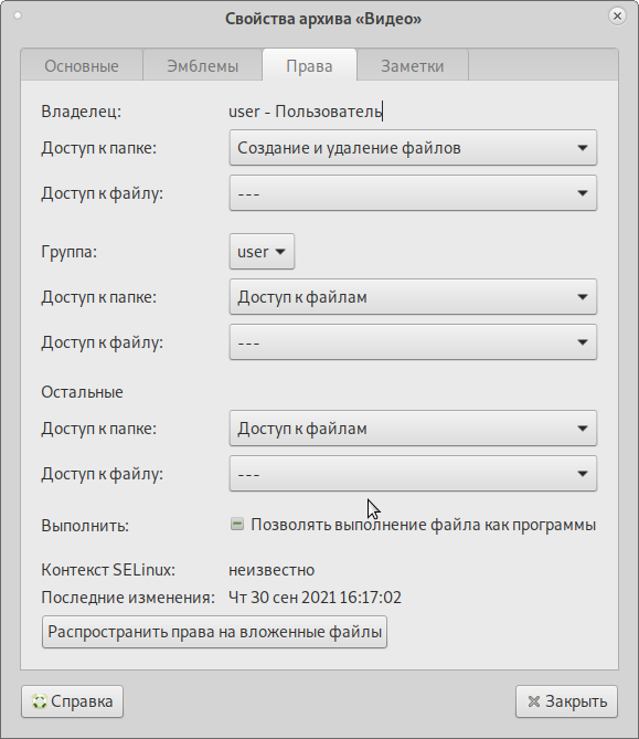 Окно Свойства объекта показывает подробную информацию о любом файле, папке или другом объекте в файловом менеджере (какие именно сведения будут доступны, определяется типом объекта):