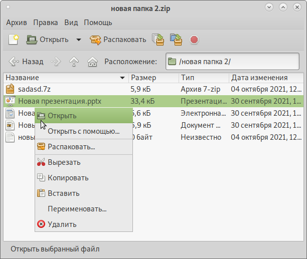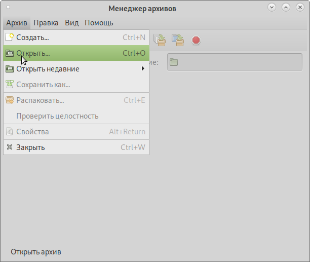 Чтобы открыть Engrampa, нужно выполнить следующие действия: