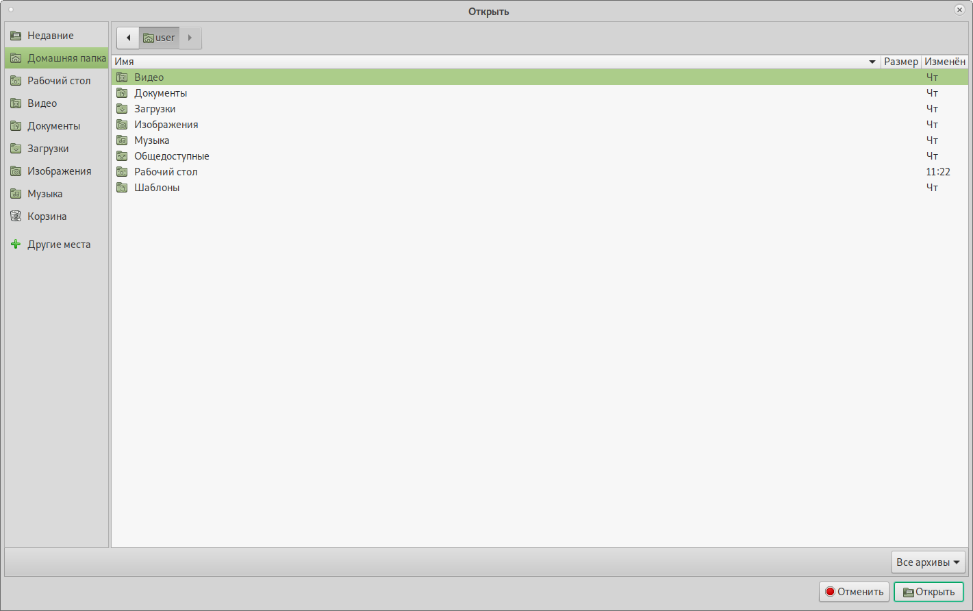 1. Выберите Архив ▸ Открыть, чтобы открыть диалоговое окно Открыть, или нажмите Ctrl+O, или щёлкните на кнопке Открыть в панели инструментов.