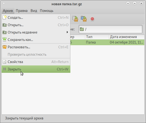 Чтобы закрыть текущий архив и текущее окно Менеджера архивов, выберите Архив ▸ Закрыть или нажмите Ctrl+W.