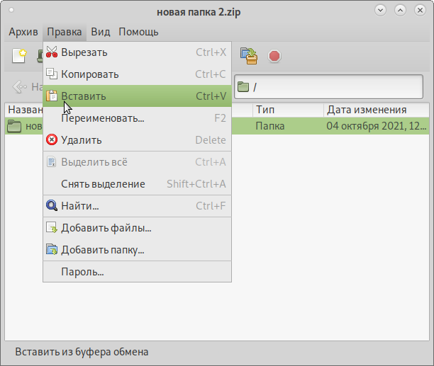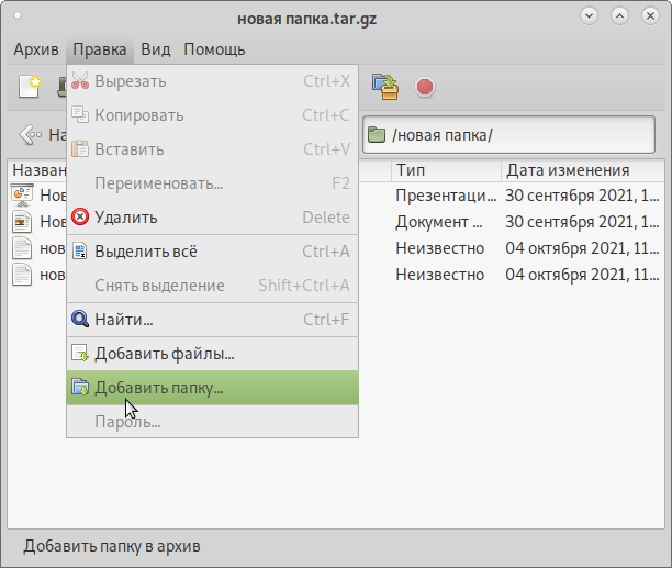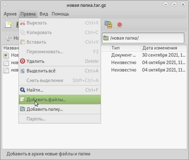 4. Нажмите Добавить. Менеджер архивов добавит файлы в текущую папку в архиве.