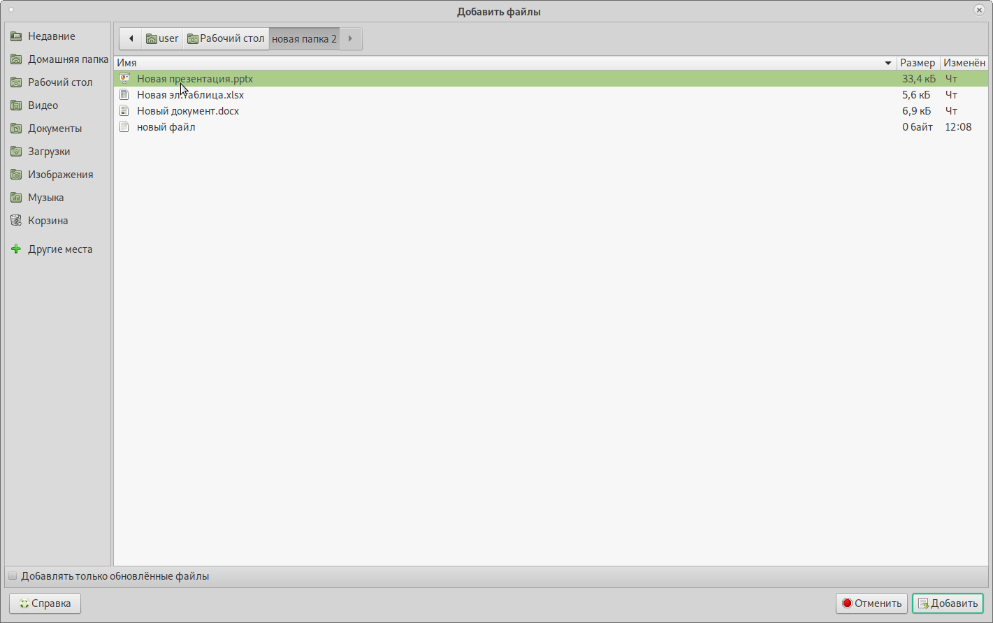 3. Выберите файлы для добавления. Для выделения нескольких файлов нажмите и удерживайте Ctrl, и щёлкайте на файлах.