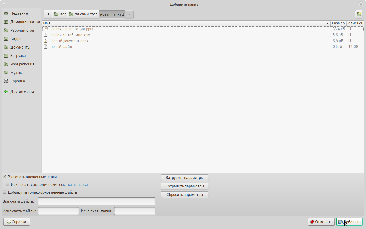 4. Нажмите кнопку Добавить. Менеджер архивов добавит выбранную папку в текущую папку архива.