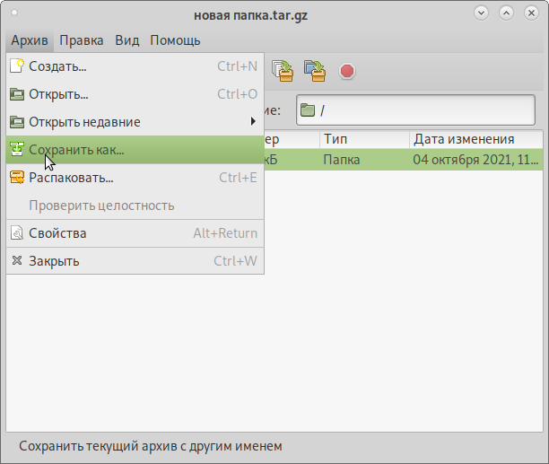 Чтобы преобразовать архив в другой формат и сохранить его в новом файле, выполните следующие действия: