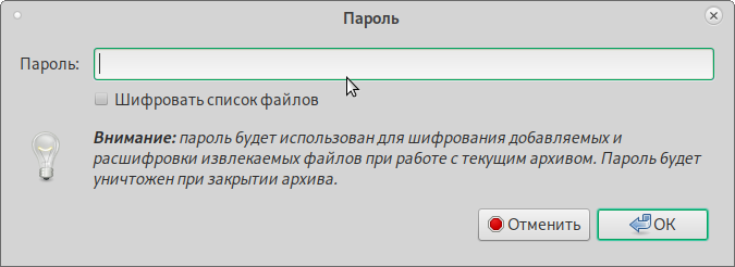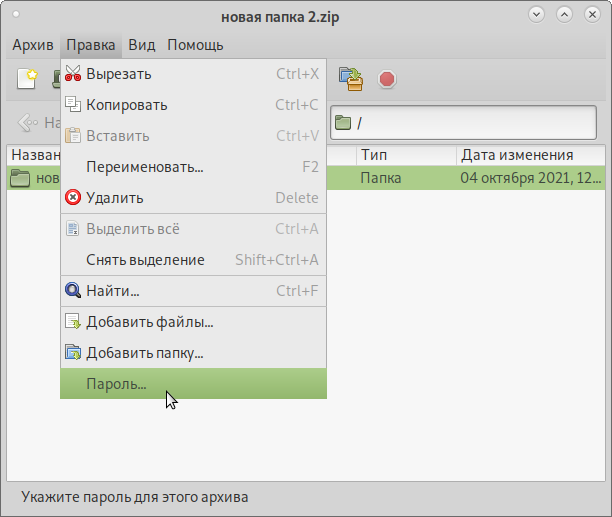 Если формат архива поддерживает шифрование, вы можете указать пароль для шифрования файлов, которые добавляете в архив.