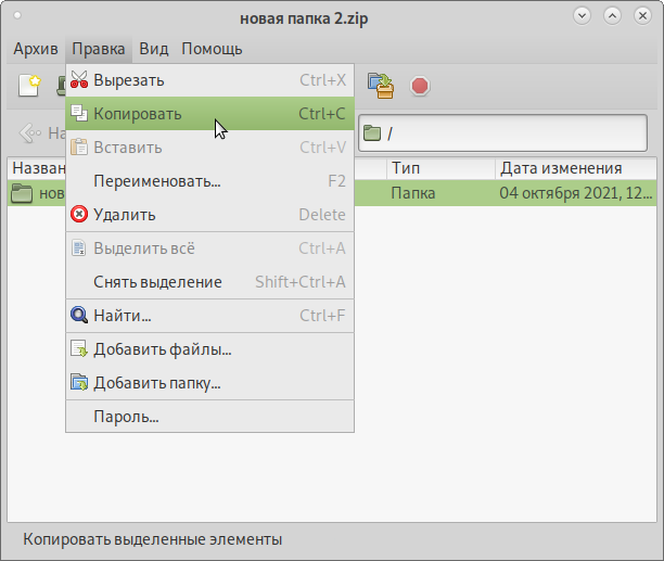 Чтобы скопировать файлы в архиве, сделайте следующее:
