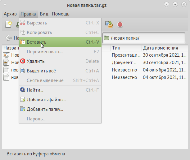 Engrampa является менеджером архивов для окружающей среды MATE. Он позволяет создавать и изменять архивы, просматривать содержимое архива, просмотреть файл, содержащийся в архиве, и извлекать файлы из архива.