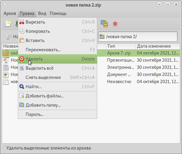 Удалить из архива все файлы, соответствующие заданному шаблону. Подробнее о шаблонах имён файлов смотрите: Шаблоны имён файлов.