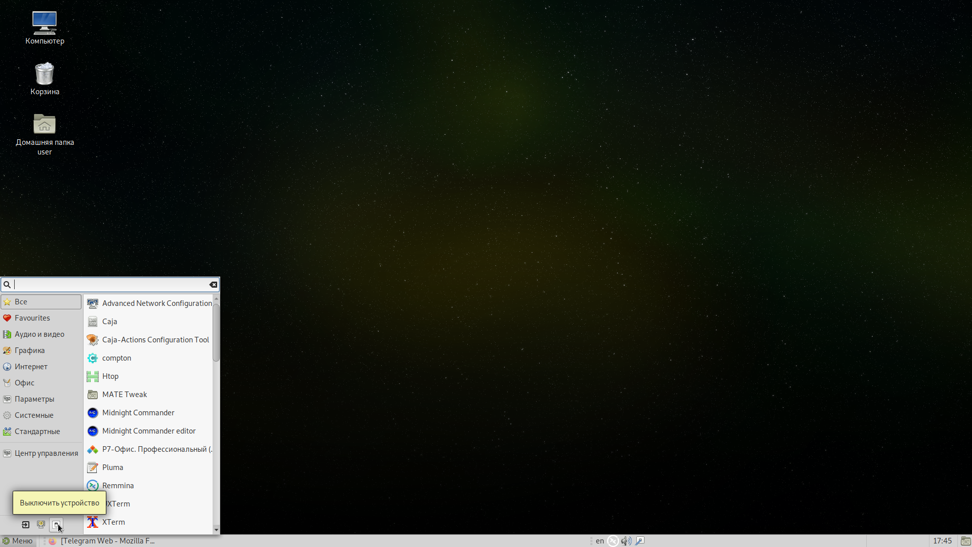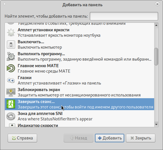 На рабочем столе MATE есть две особые области. Сверху вниз: