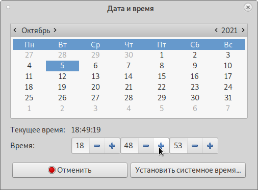 В нём вы сможете выставить нужную дату и время, чтобы изменения сохранились нужно будет нажать на кнопку Установить системное время.