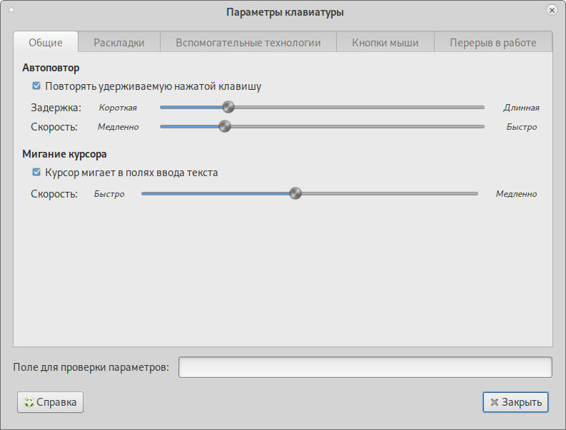 параметры клавиатуры;