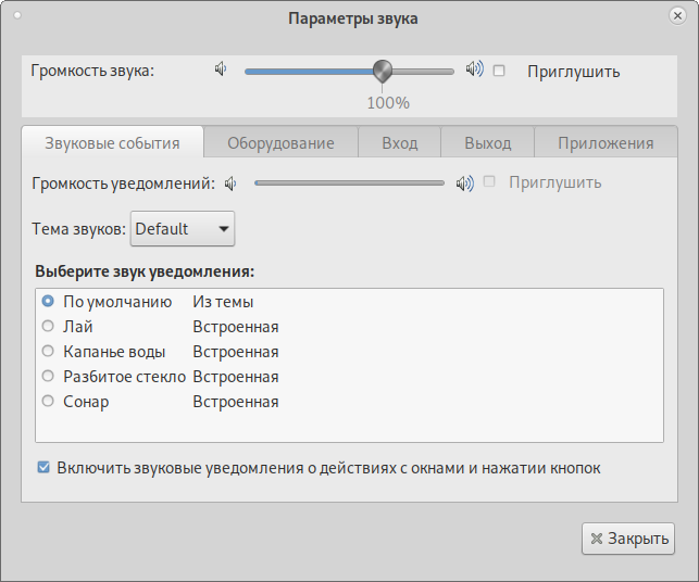 регулятор громкости и апплет настройки звука;