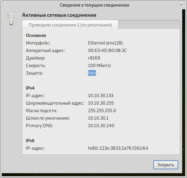 У вас откроется следующие окно в нём вы сможете просмотреть информацию о соединение: